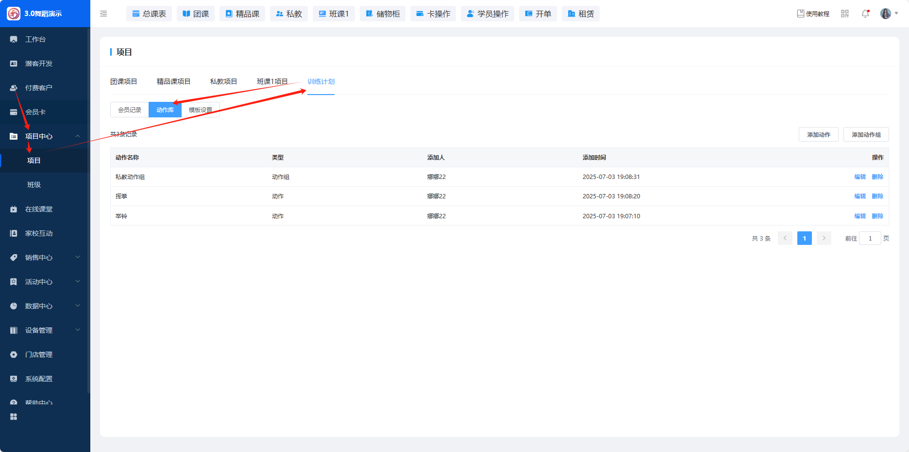 功能开通后,场馆需要先在系统中设置学员的习练动作(库):