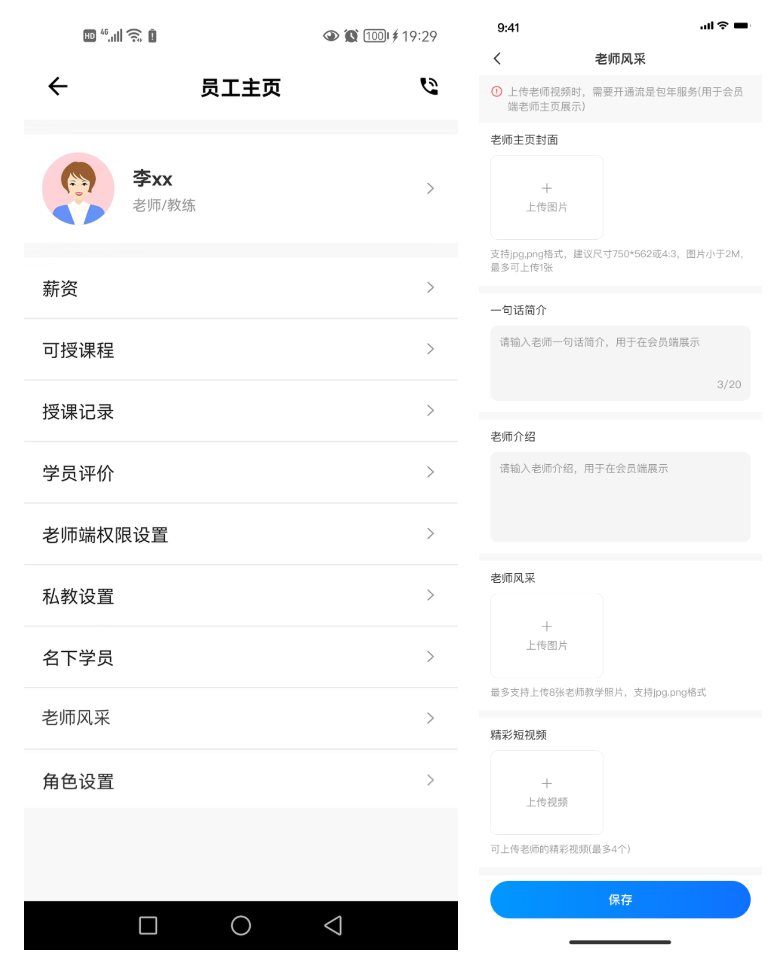 一、App端上传老师风采员工管理-老师主页“名下学员”下方增加“风采展示”入口。