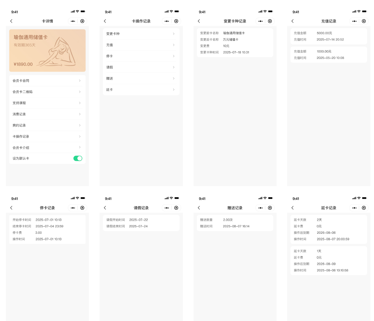 2.我的卡包-会员卡-会员卡详情增加“卡操作记录”,