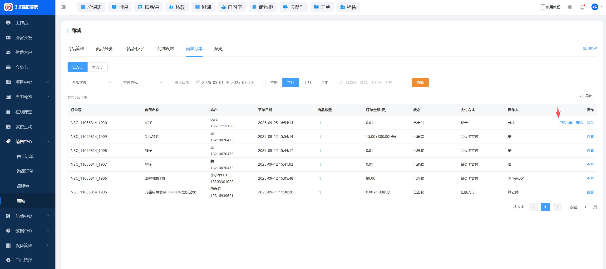1.销售中心-商城-商城订单,已支付订单列表增加:打印收据功能,已取消、已退单状态订单不显示打印收据