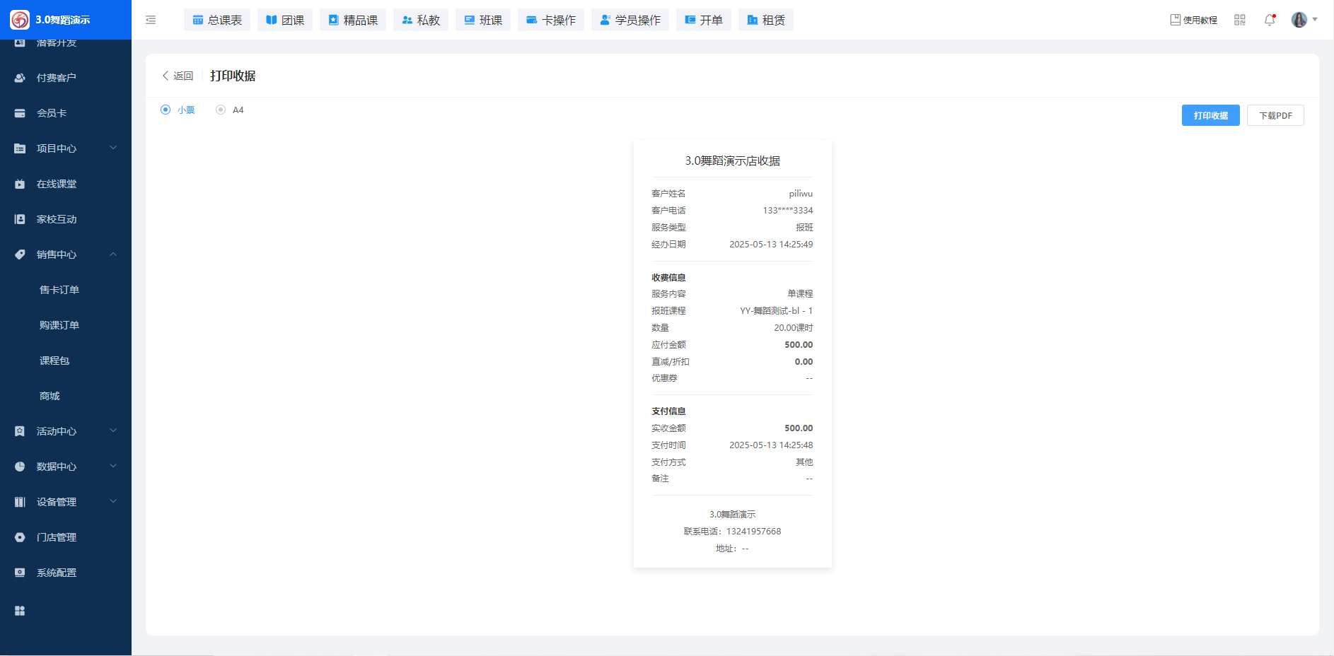 2.打印收据页面及逻辑复用销售中心-购课订单-打印收据页面