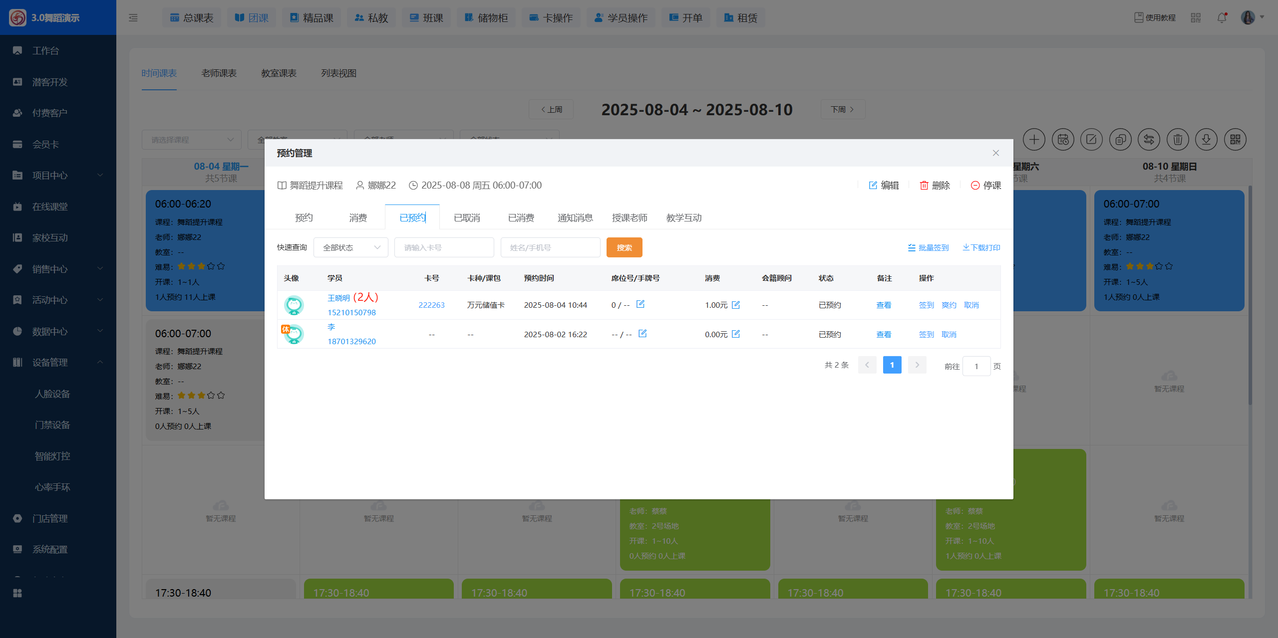 2.课表-预约管理,预约人若是多人,显示如下图:(N人)
