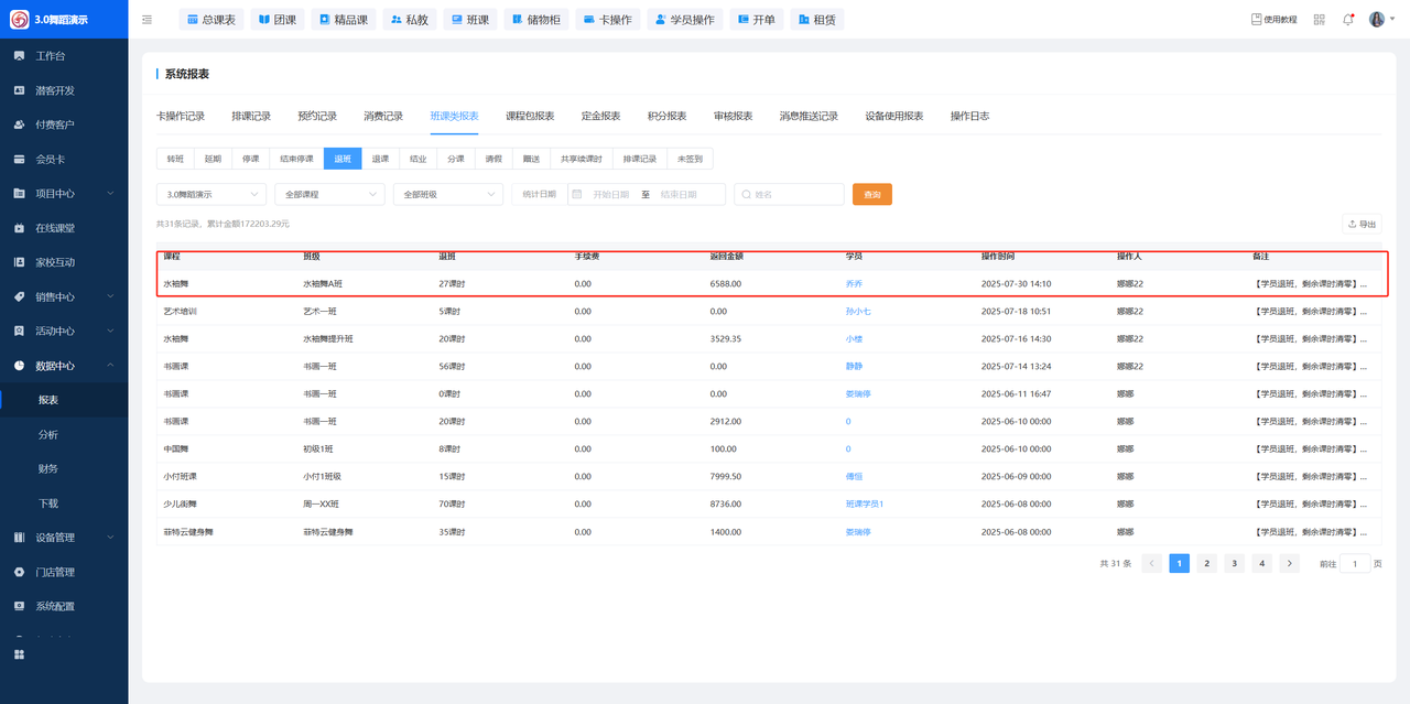 1. 学员报班后,操作退班,学员应该还是付费客户(在付费客户列表可以查询到),还可以在付费客户主页查看报班、退班等操作记录
