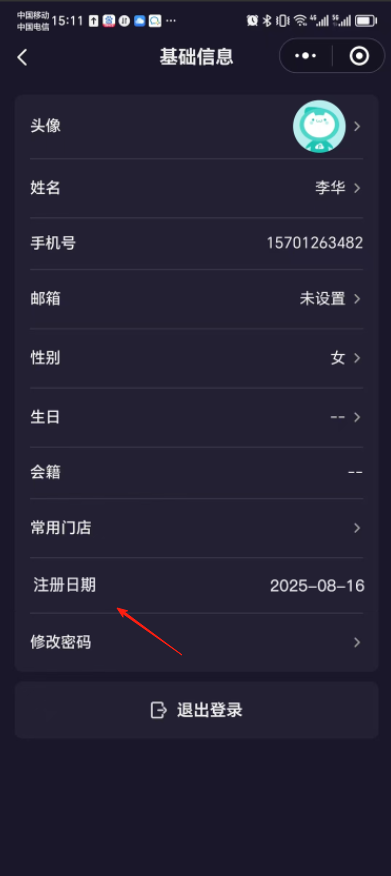小程序端会员基本信息增加“注册日期”,PC端录入的会员,注册时间为录入时间。