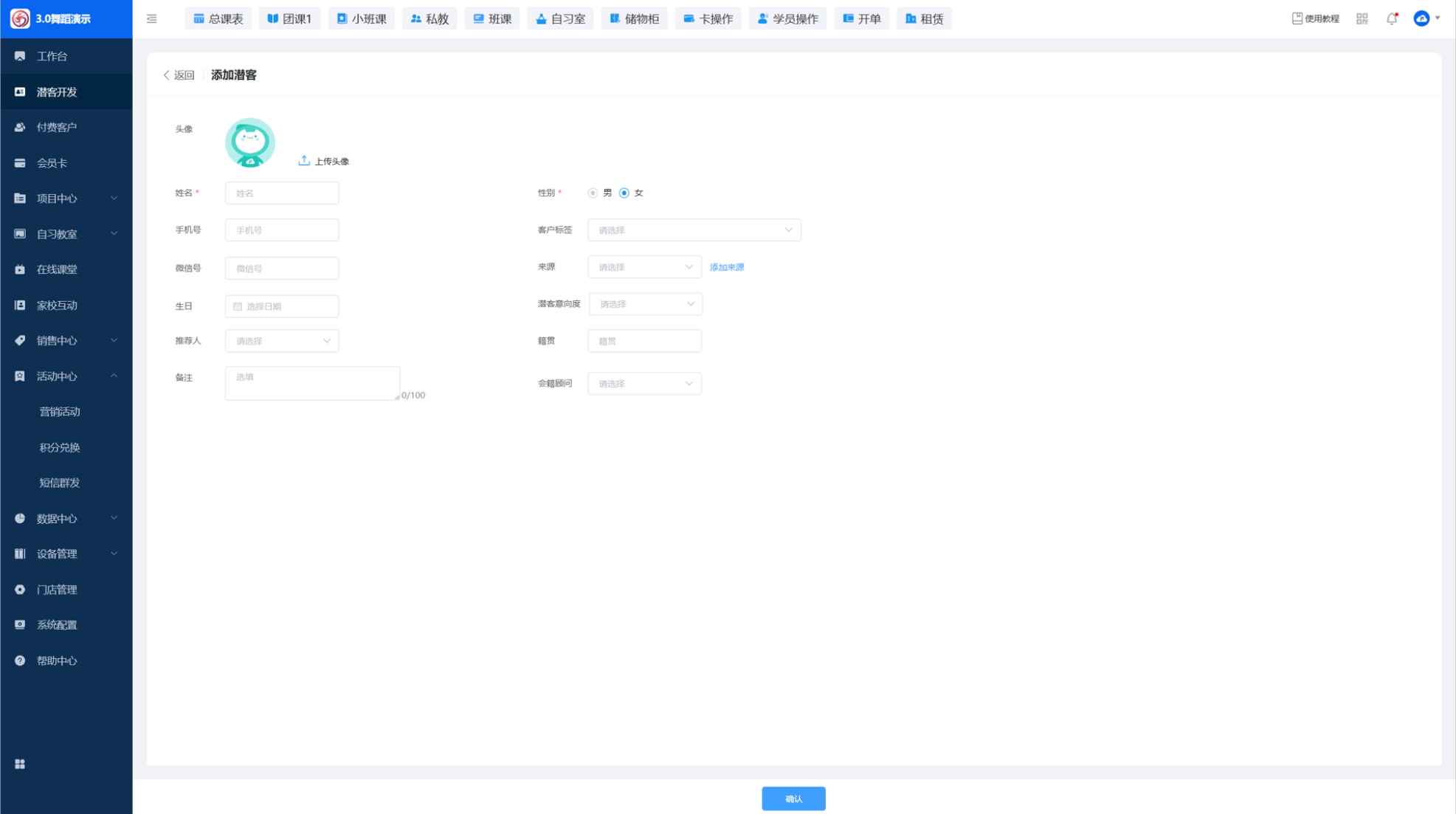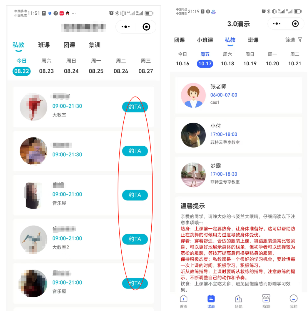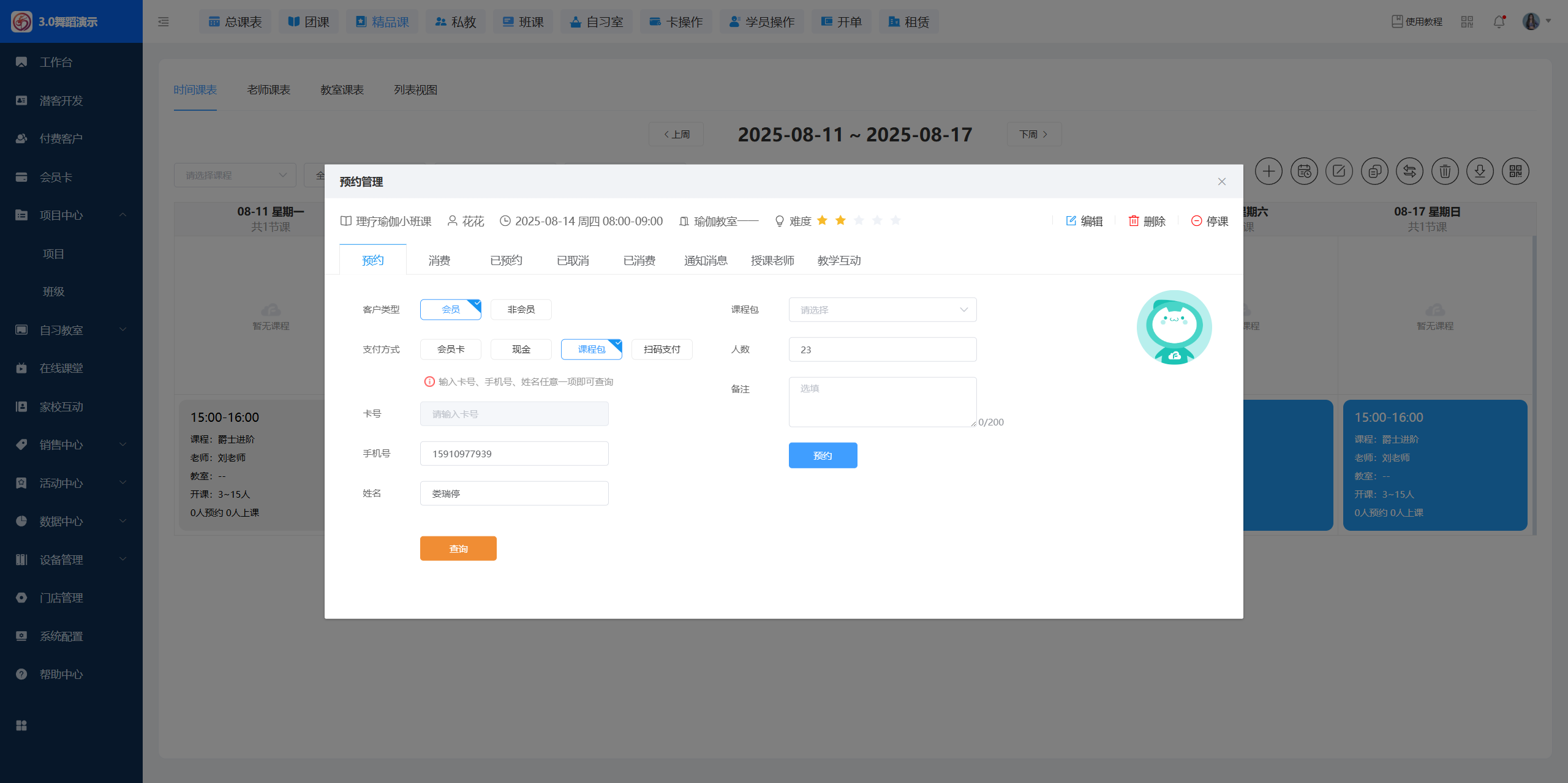 功能描述:开启后,会员可以在会员端自主预约私教课